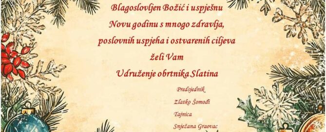 Čestit Božić i uspješna Nova godina… Udruženje obrtnika Slatina Predsjednik: Zlatko Šomođi Tajnica: Snježana Graovac